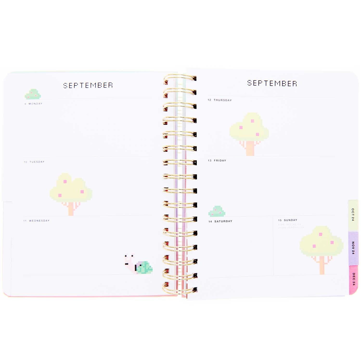 Kalender können weit mehr sein als schlichte Terminverwalter. Mit der Agenda der Themenwelt „Futschikato“ wird die Jahresplanung zu einem echten Erlebnis für ein kreatives Jahr voller Pläne, Abenteuer und Ideen. Das Cover des Timers mit Spiralbindung zeigt ein schönes Pixel-Motiv, das mit Hot Foil Details verziert ist. Der Kalender begleitet Sie 17 Monate und bietet neben einer praktischen Jahres-, Monats- und Wochenübersicht auch reichlich Platz für Notizen, einen Geburtstagskalender, eine kleine Tasche für Unterlagen sowie zwei Stickerbögen, mit denen Sie den Kalender gestalten können.