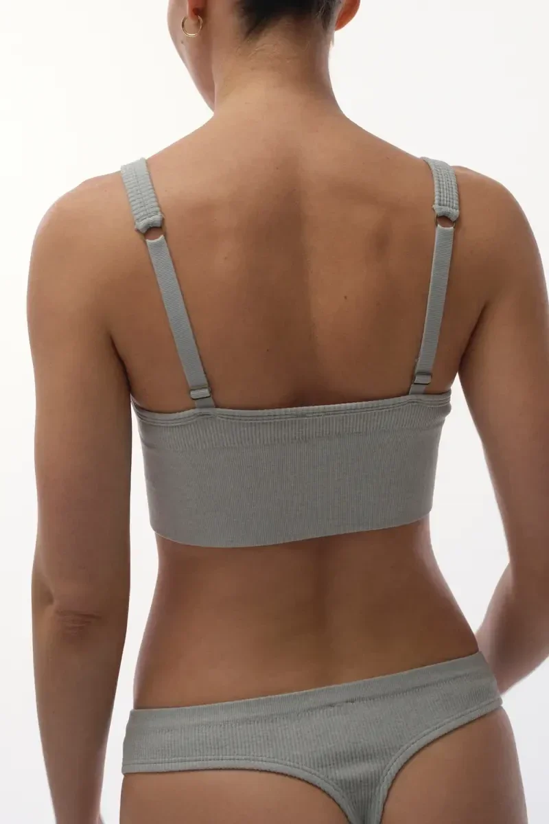 - Das schmale, gerippte Unterbrustband bietet leichten Halt