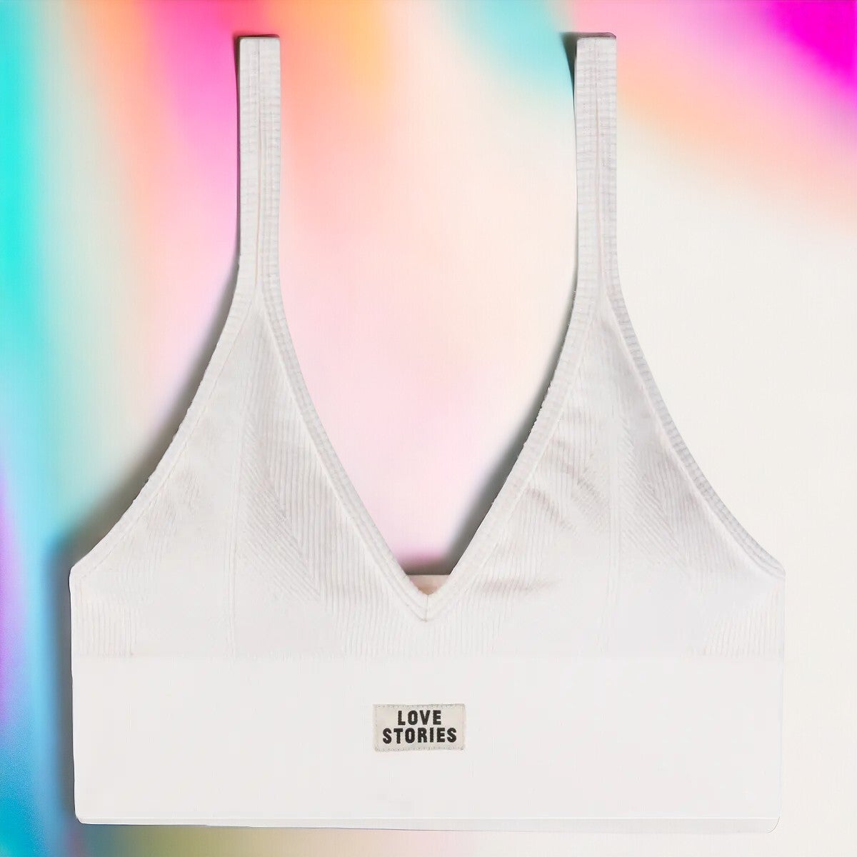 - Das Unterbrustband ist mit einem kleinen Love-Stories-Logo-Label verziert