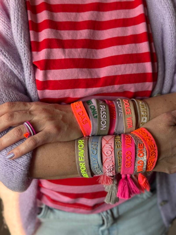 Jedes Armband ist mit einem tollen Spruch bestickt und ein absoluter Hingucker! Auch toll zum Kombinieren mit unseren SMUK BI Armbändern, denn mehr ist manchmal mehr 😉