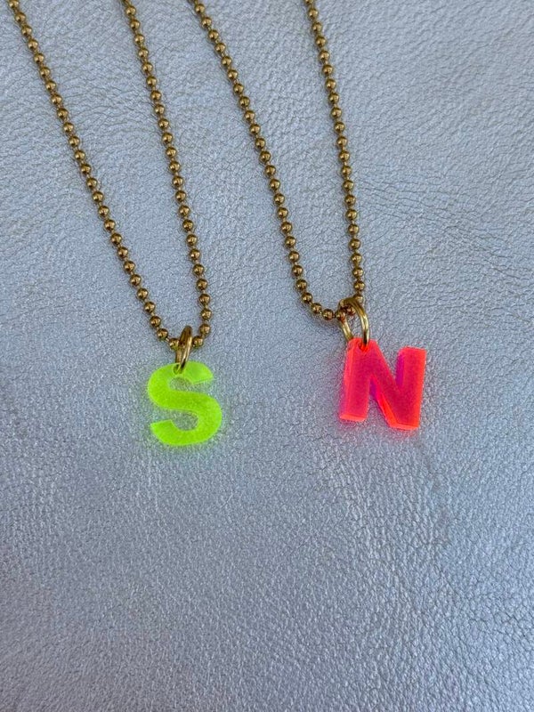 Buchstaben in neonrot-orange und neongelb erhältlich.
