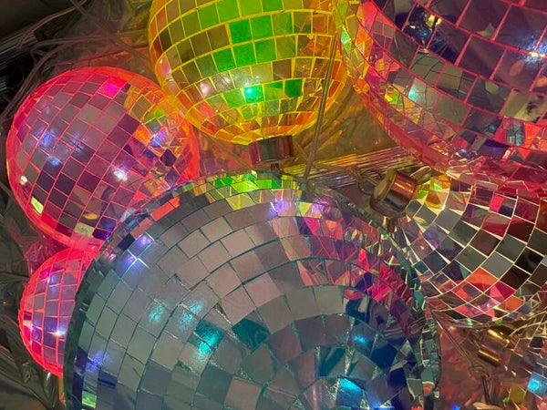 Für den WOW Effekt mische Größe und Farbe der Discokugeln untereinander.
