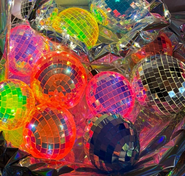 Für den WOW Effekt mische Größe und Farbe der Discokugeln untereinander.