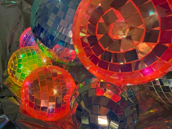 Für den WOW Effekt mische Größe und Farbe der Discokugeln untereinander.