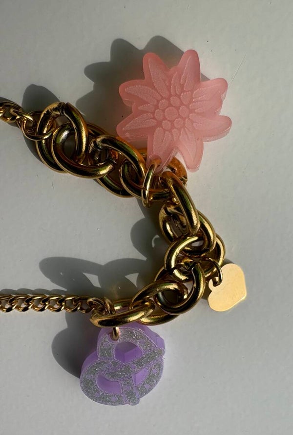 Armband aus Edelstahl vergoldet mit Wiesn Anhängern aus Acryl