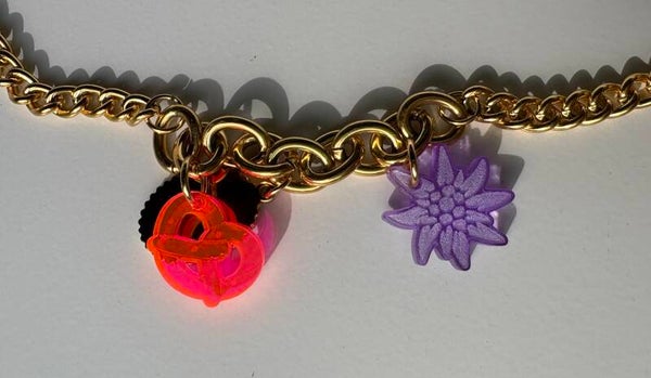 Armband aus Edelstahl vergoldet mit Wiesn Anhängern aus Acryl