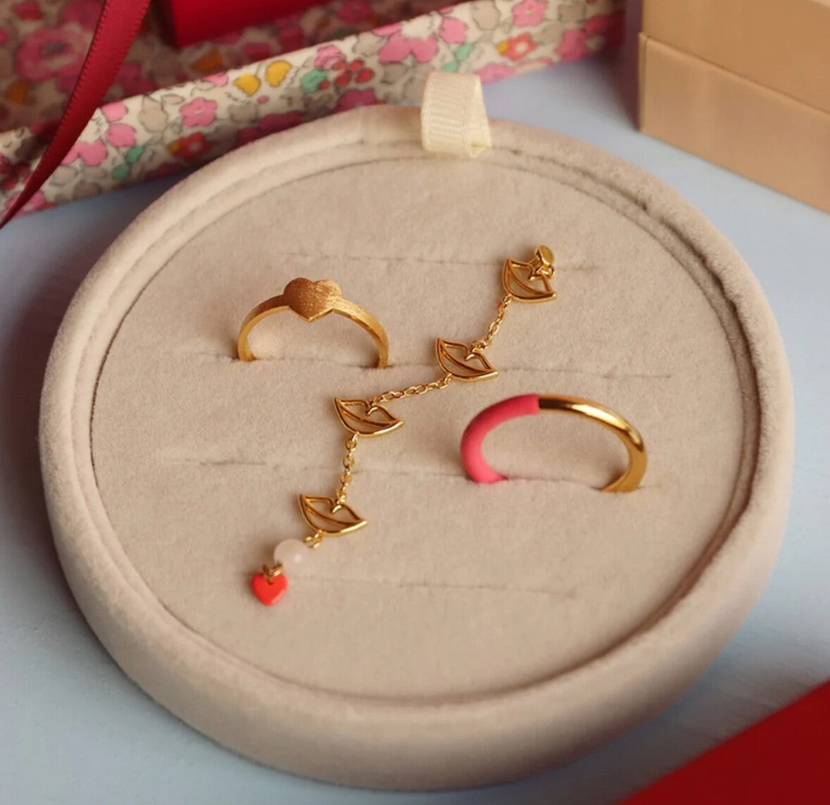 LULU COPENHAGEN Double Color Ring Gold/Coral Pink