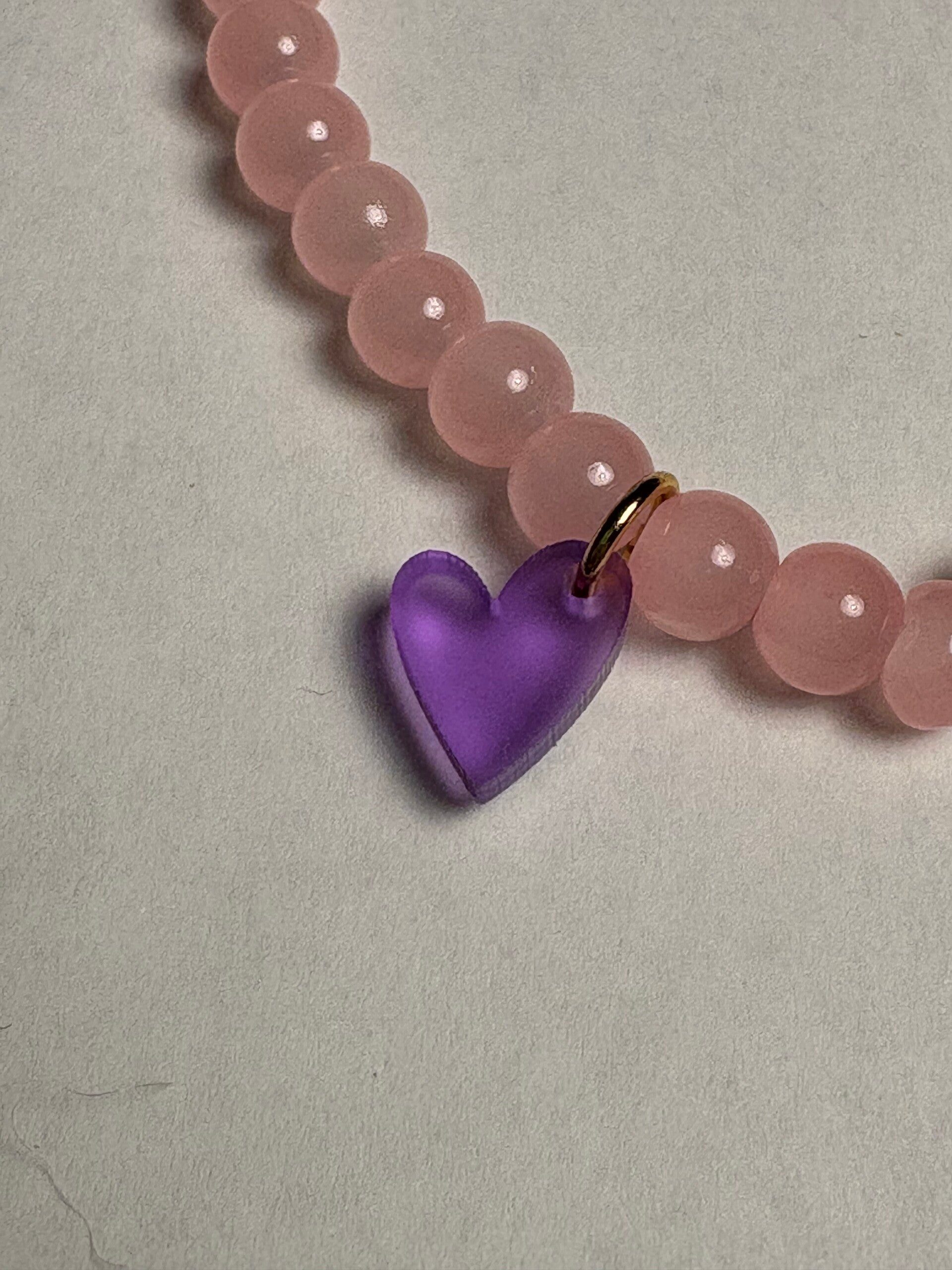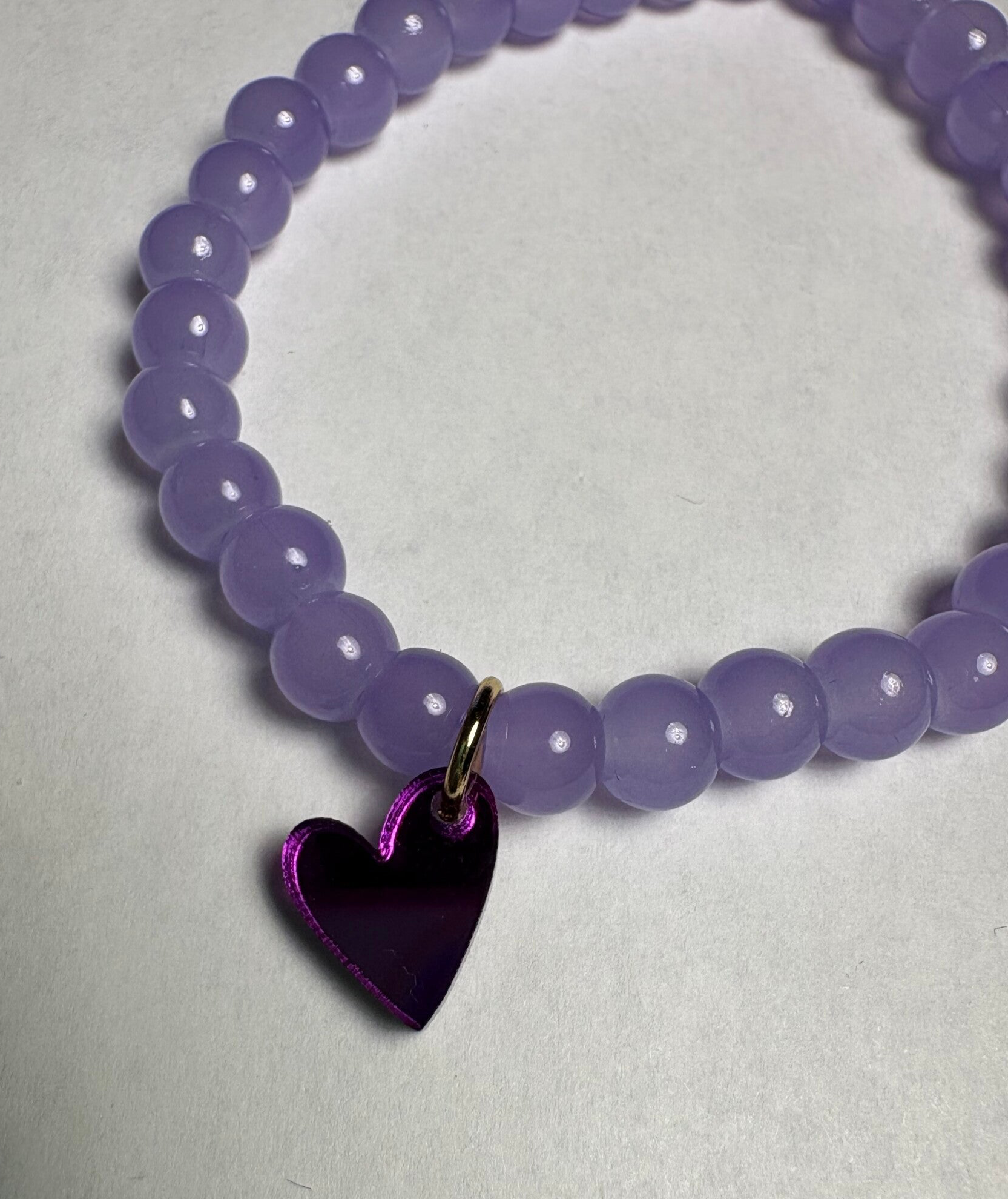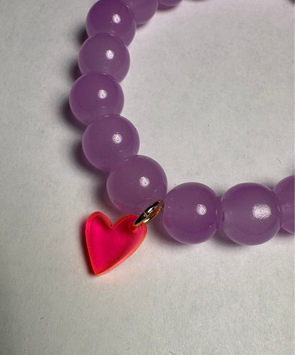Armband aus hell lila farbigen Glasperlen mit Acryl Anhänger Busenfreundin.