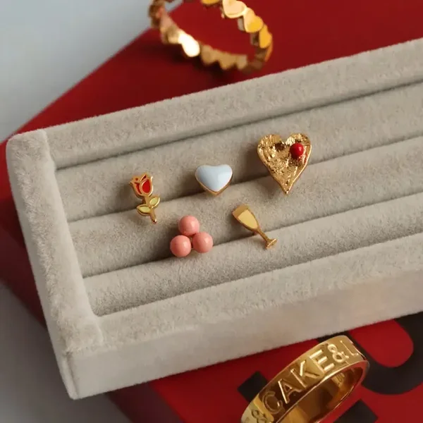 Materialien: 18 Karat vergoldetes Messing, 50% recyceltes Material, E-coating, Emaille